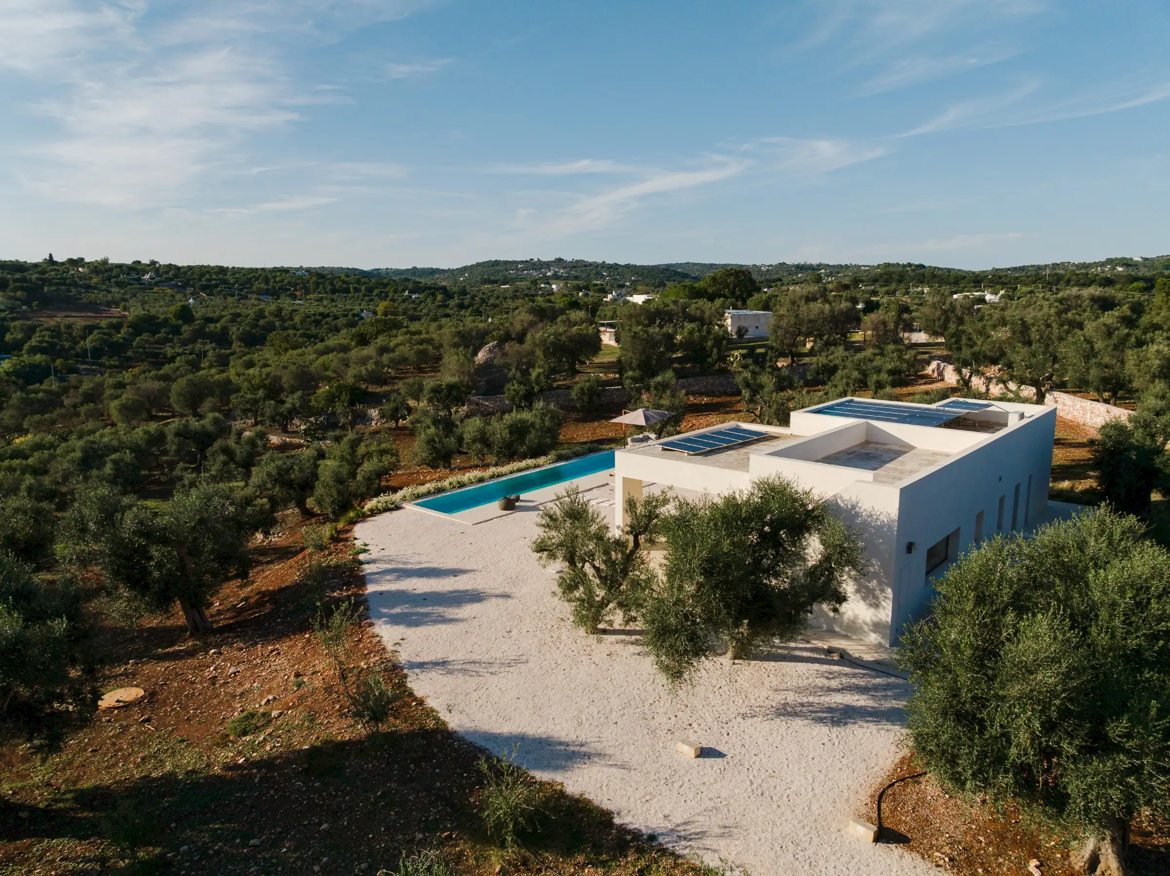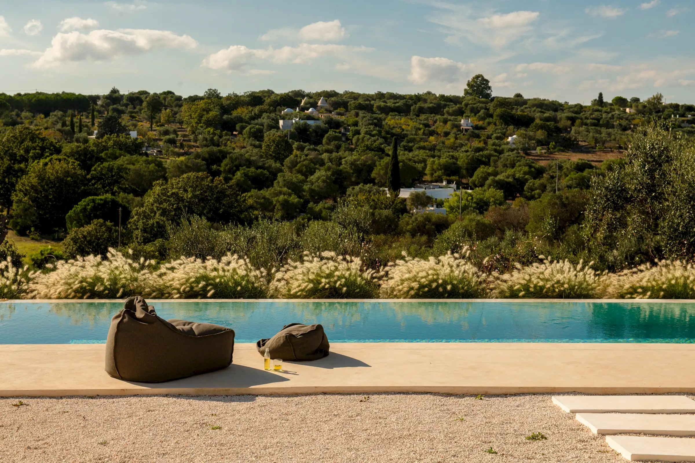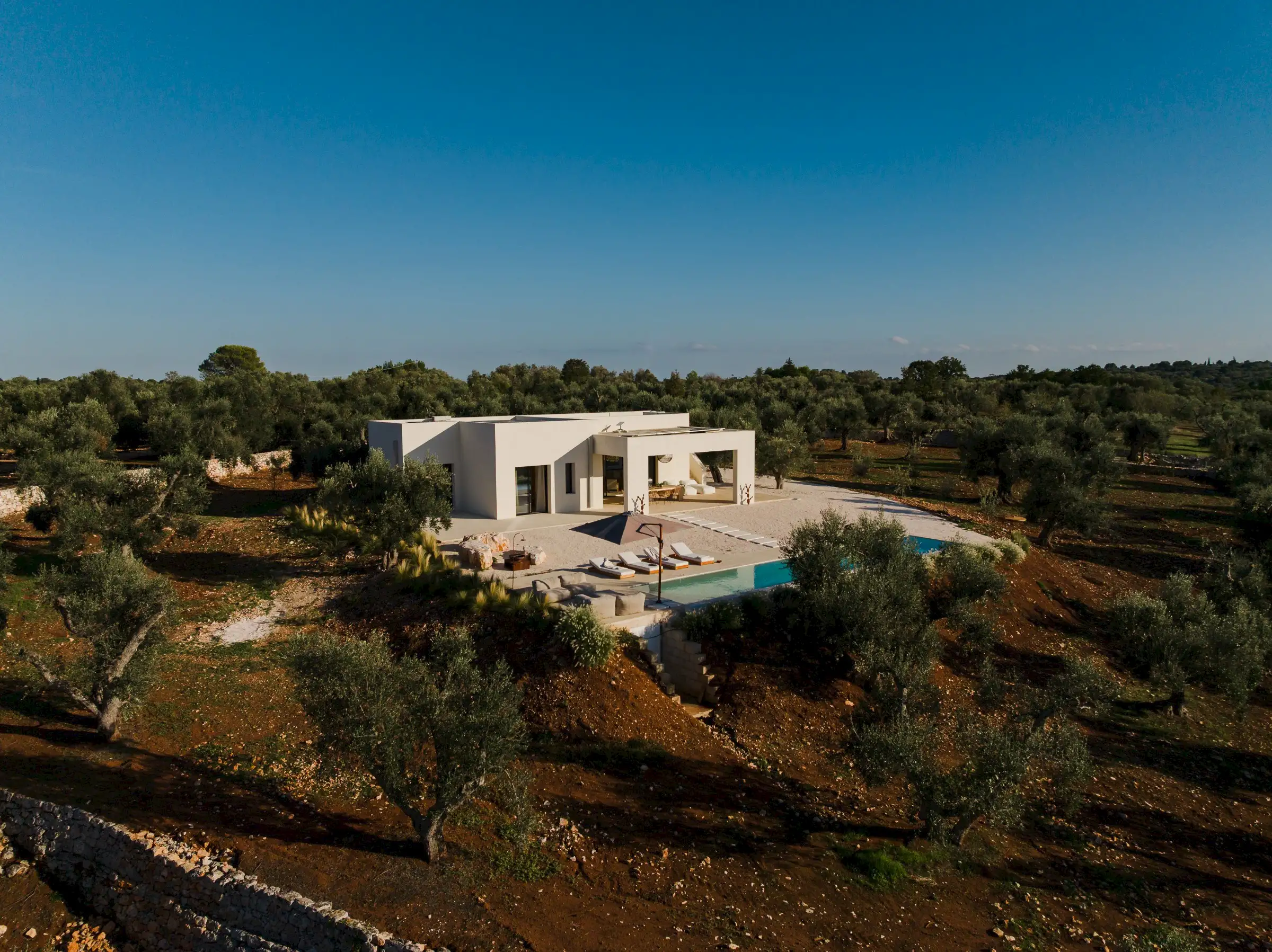 Le Stipe is a large, white modern villa halfway between Ostuni and Cisterno, in this particularly pretty, olive tree-strewn part of Puglia. While there are numerous contemporary properties in the Itria Valley, few are finished as well as this one.