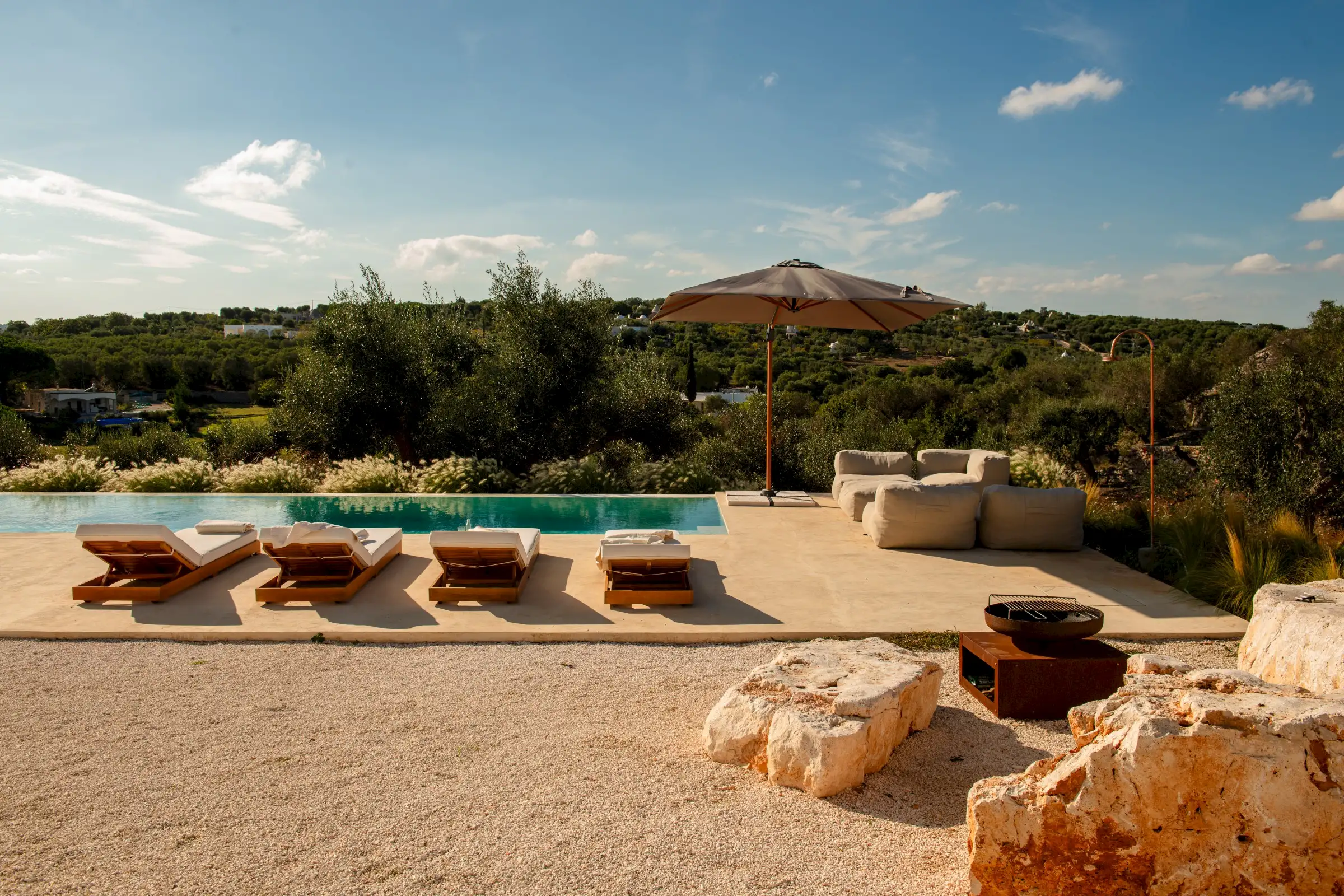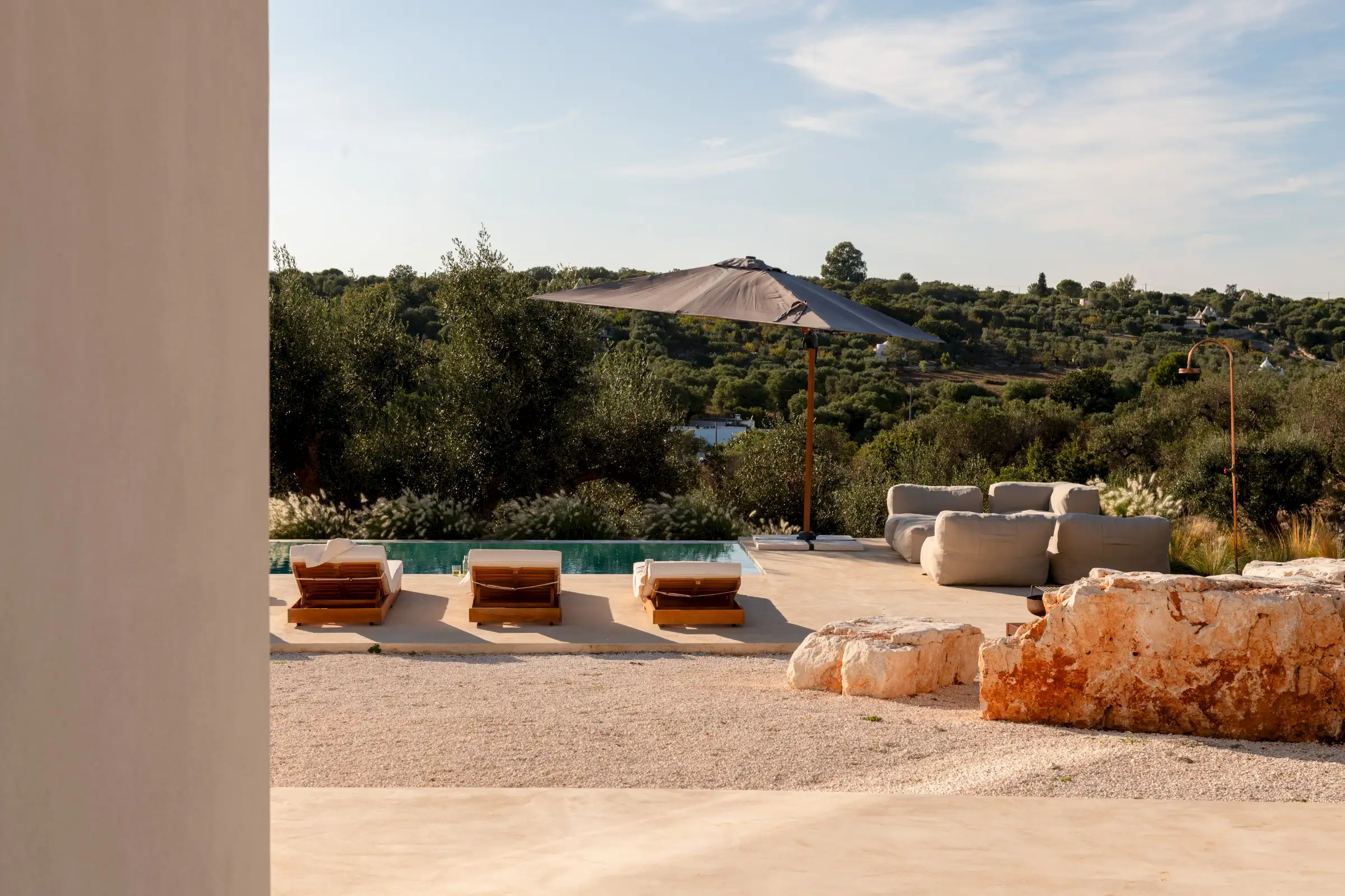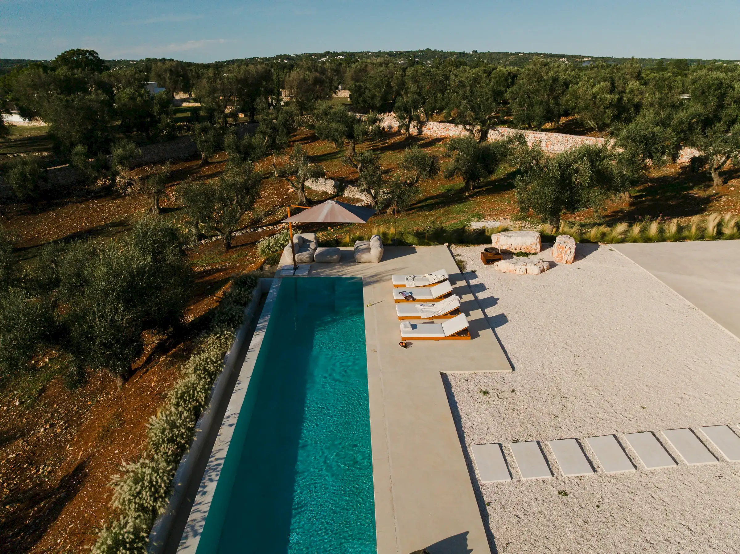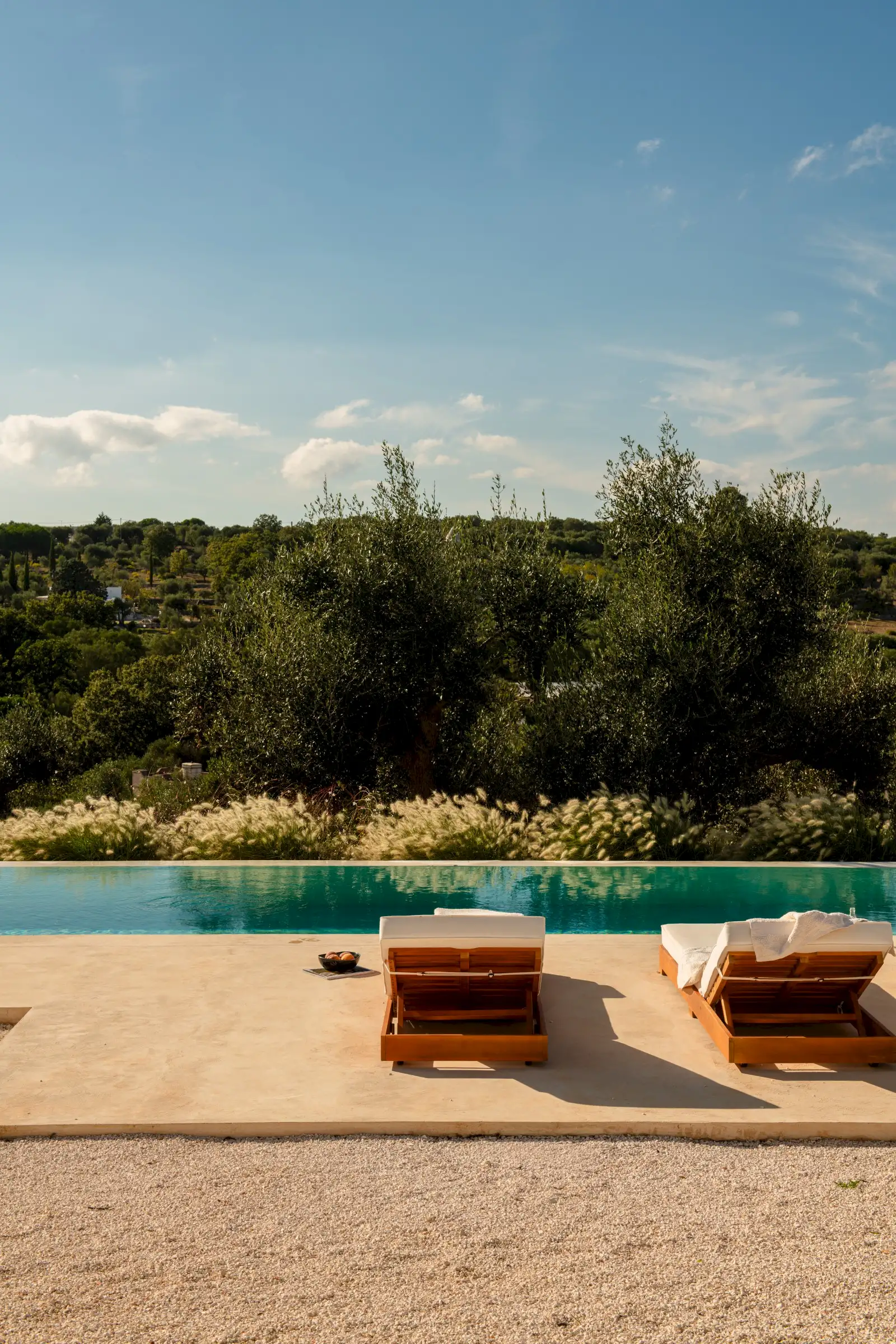 Le Stipe is a large, white modern villa halfway between Ostuni and Cisterno, in this particularly pretty, olive tree-strewn part of Puglia. While there are numerous contemporary properties in the Itria Valley, few are finished as well as this one.