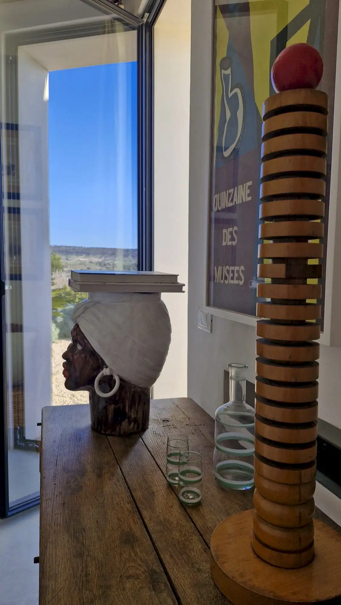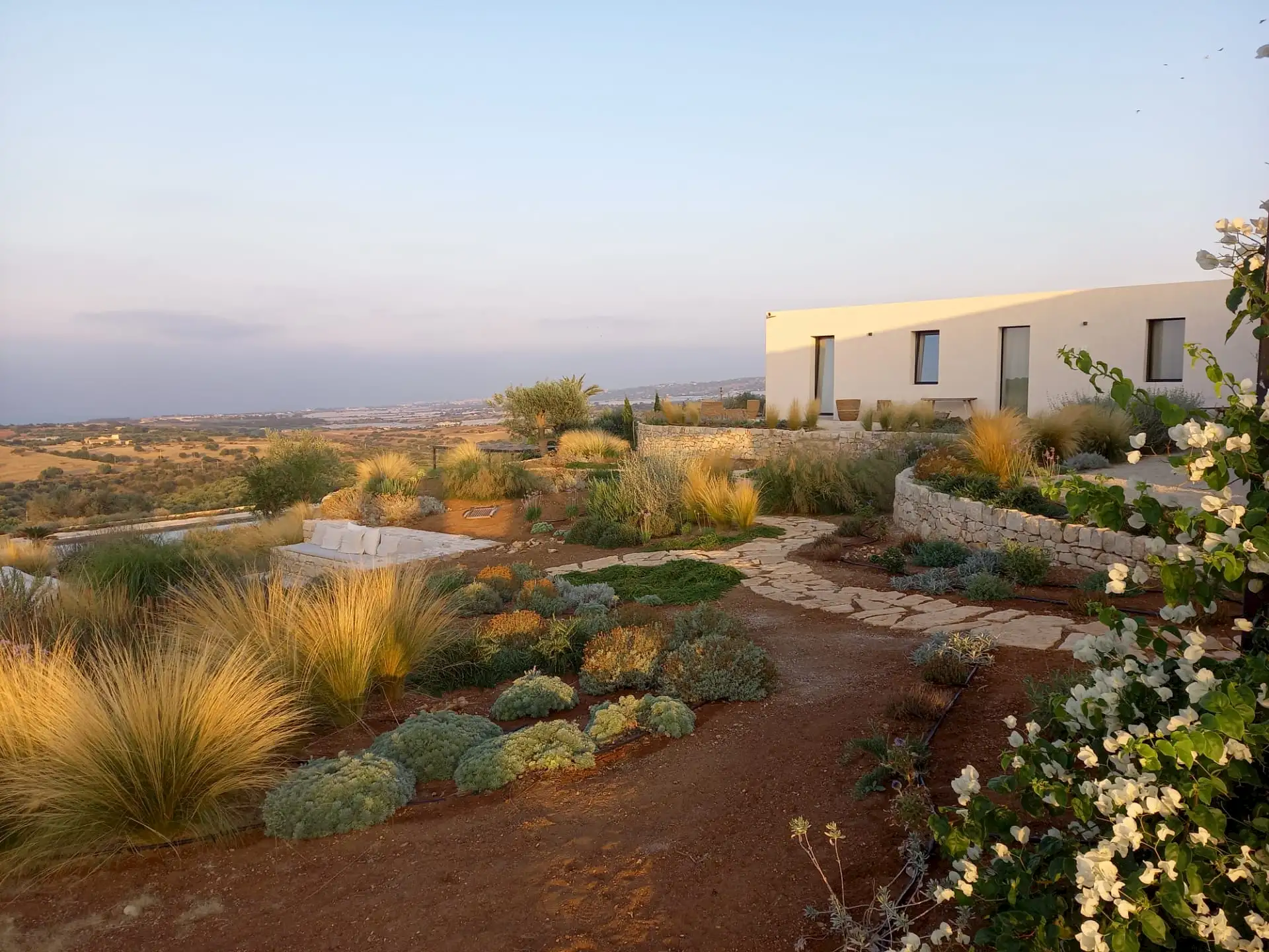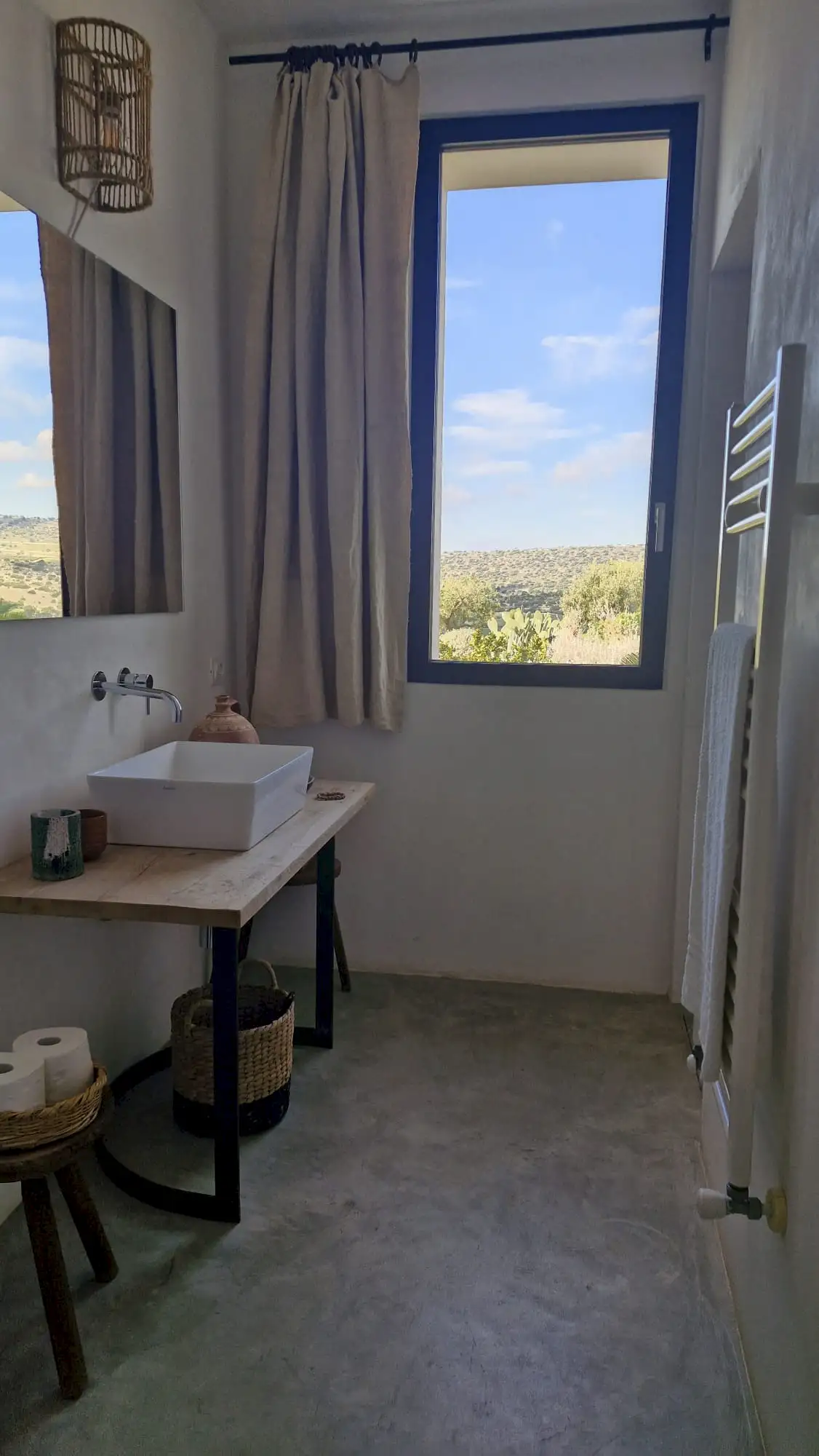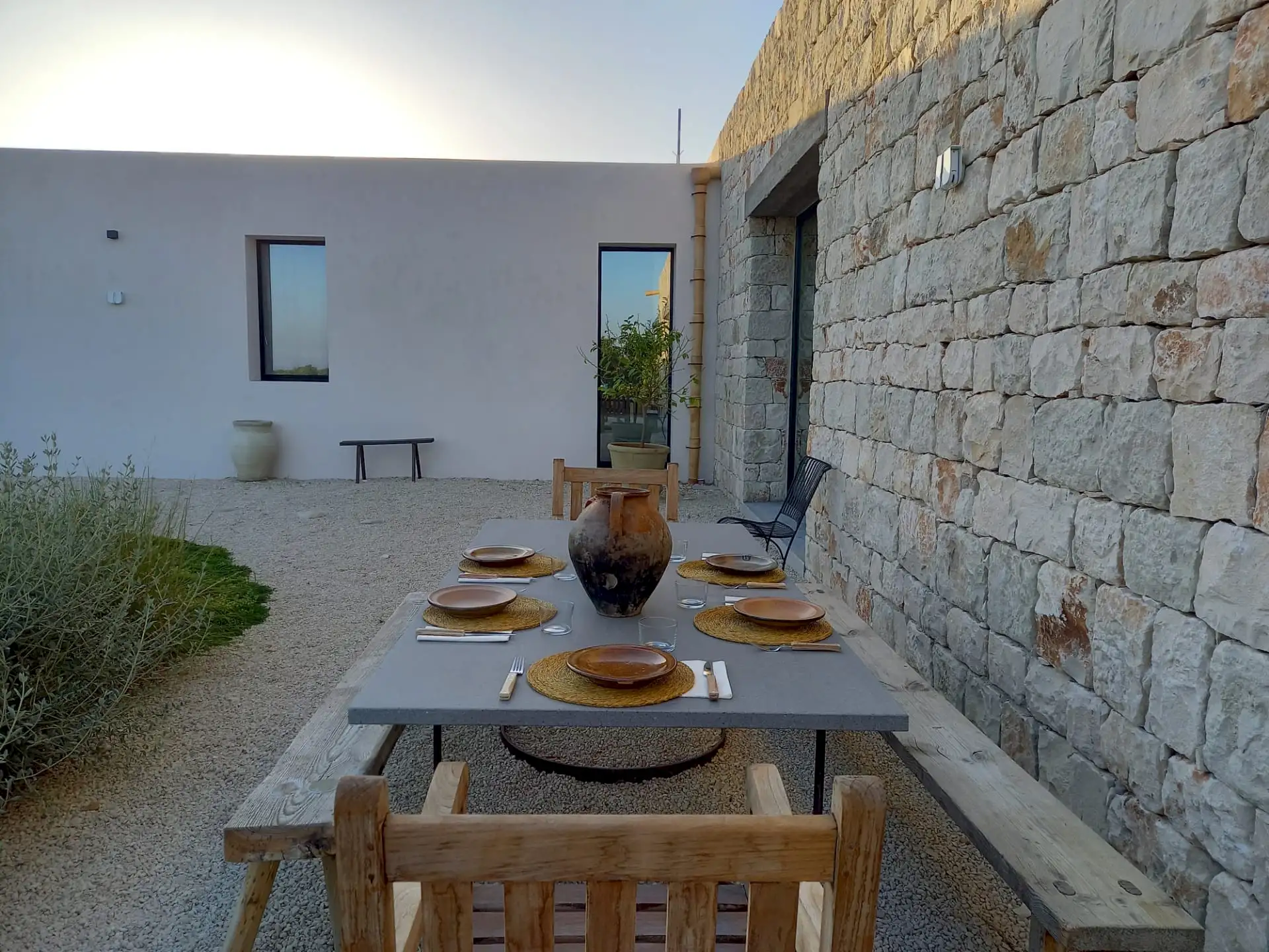 The design has been as carefully balanced inside as out, and the six en-suite doubles are individually decorated with original art, lighting and furniture, both modern and antique, much of it championing local makers. Smooth floors, a well-equipped kitchen and a vast living room all have doors to outside that can be kept open to create a breeze, even in the heat of summer.