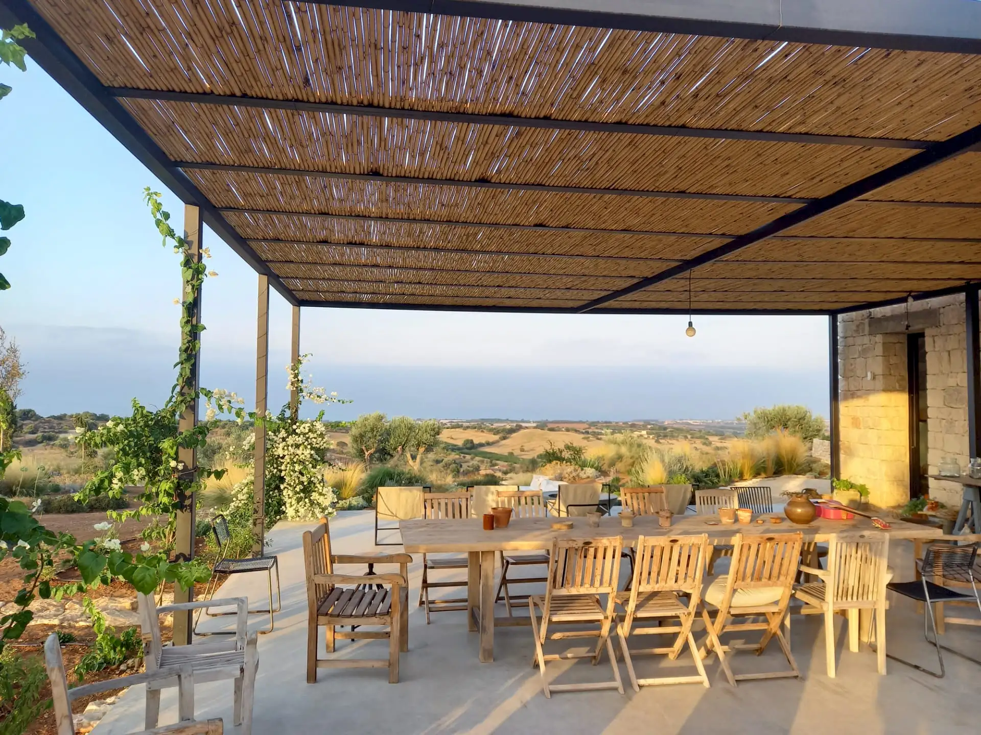 Villa Marina is a large family villa not far from Scicli and the coast. Cooled by the breeze of its dramatic hilltop setting, the house offers incredible views of the sea to the south and into the rugged Irminio valley in the opposite direction.