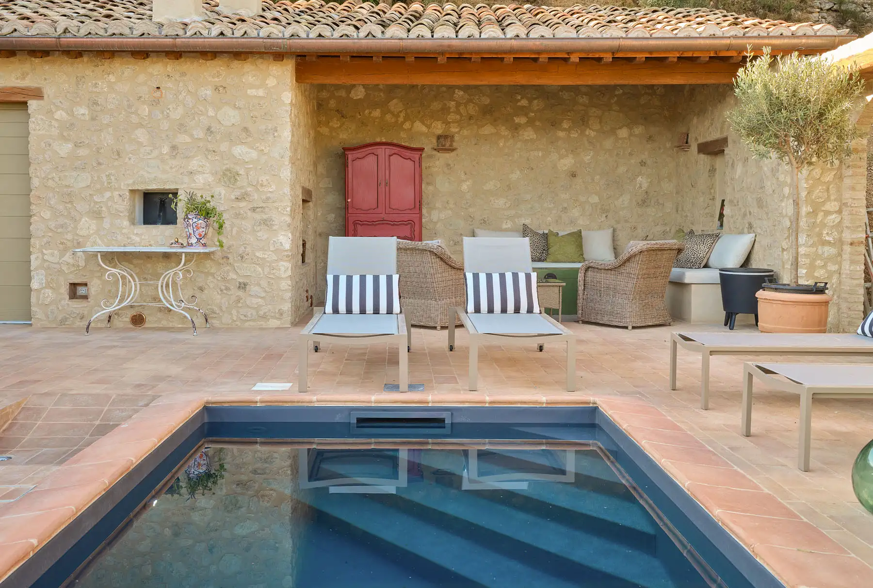 Capetta is a recently completed villa tucked into the olive grove terraces of this particularly pretty part of Umbria. A sister property to Casa Cape, the house exudes the same individual, old-school comfiness and charm with the same rapturous views.