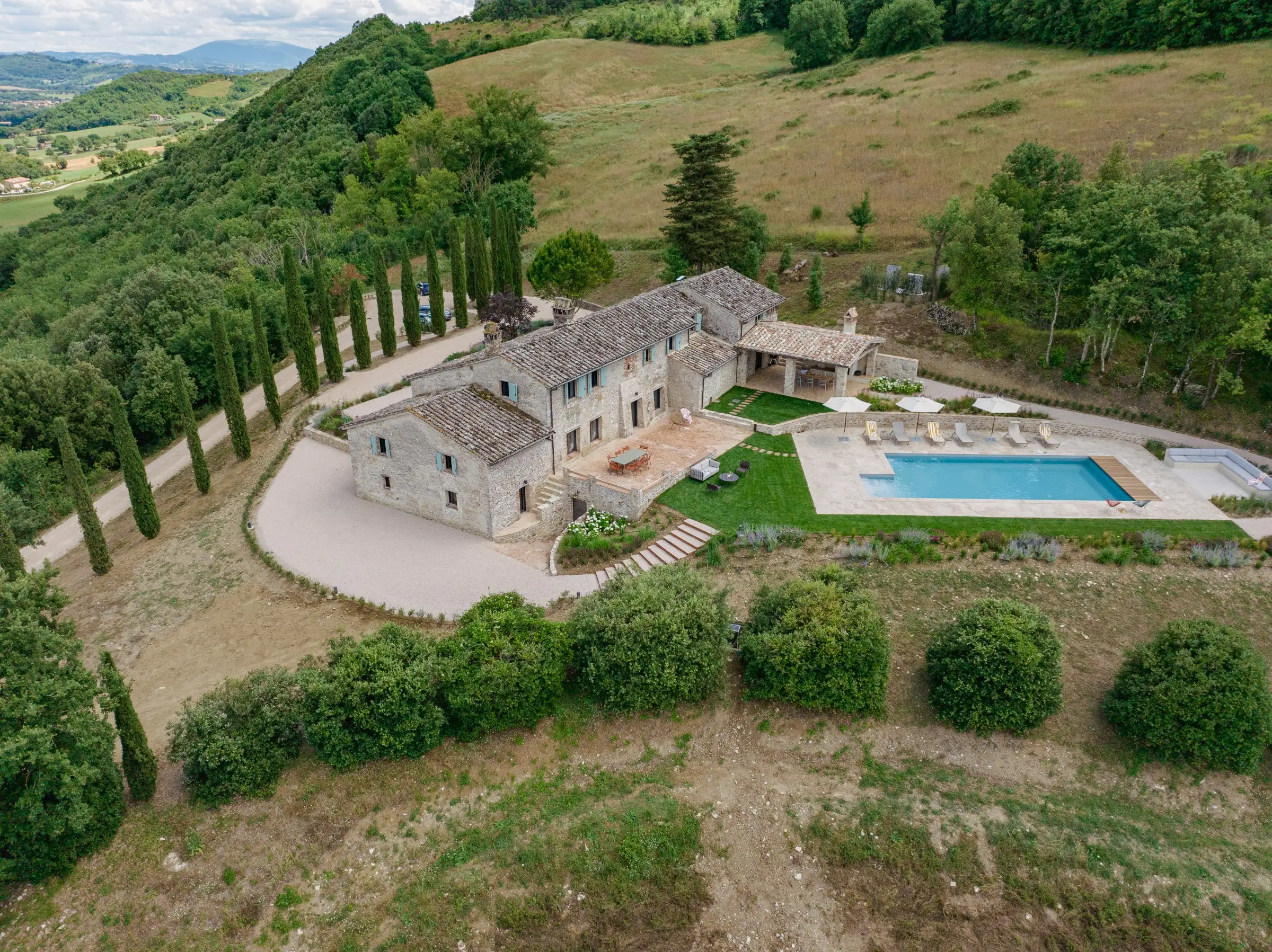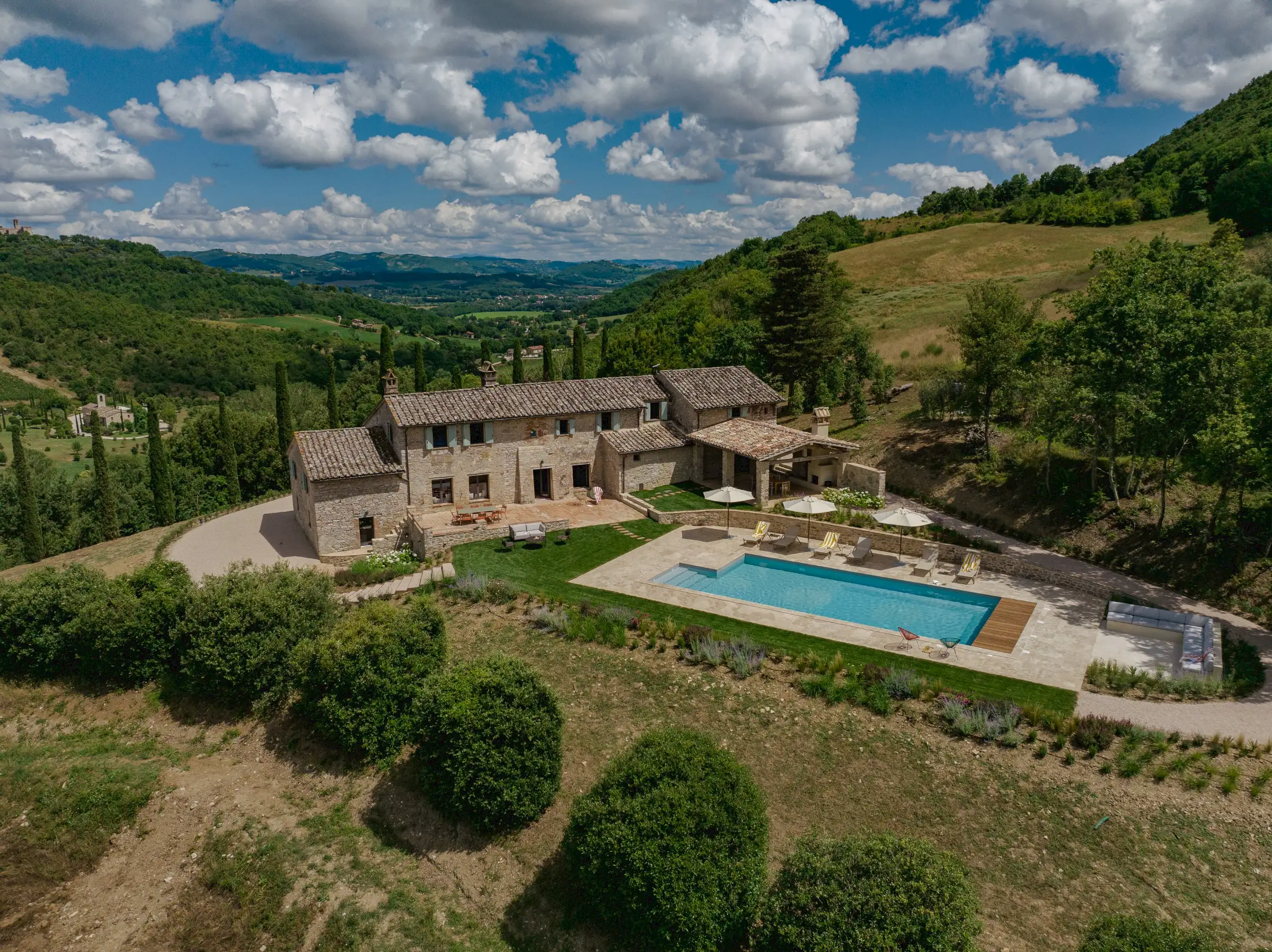 Approached by an avenue of iconic Cypress trees, the house, garden and pool are the stuff of dreams, in a setting that is exquisite, even by Umbrian standards