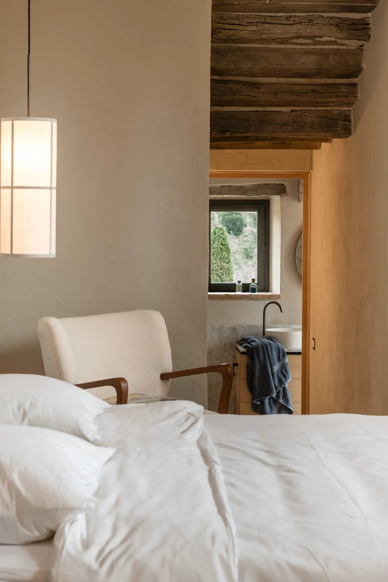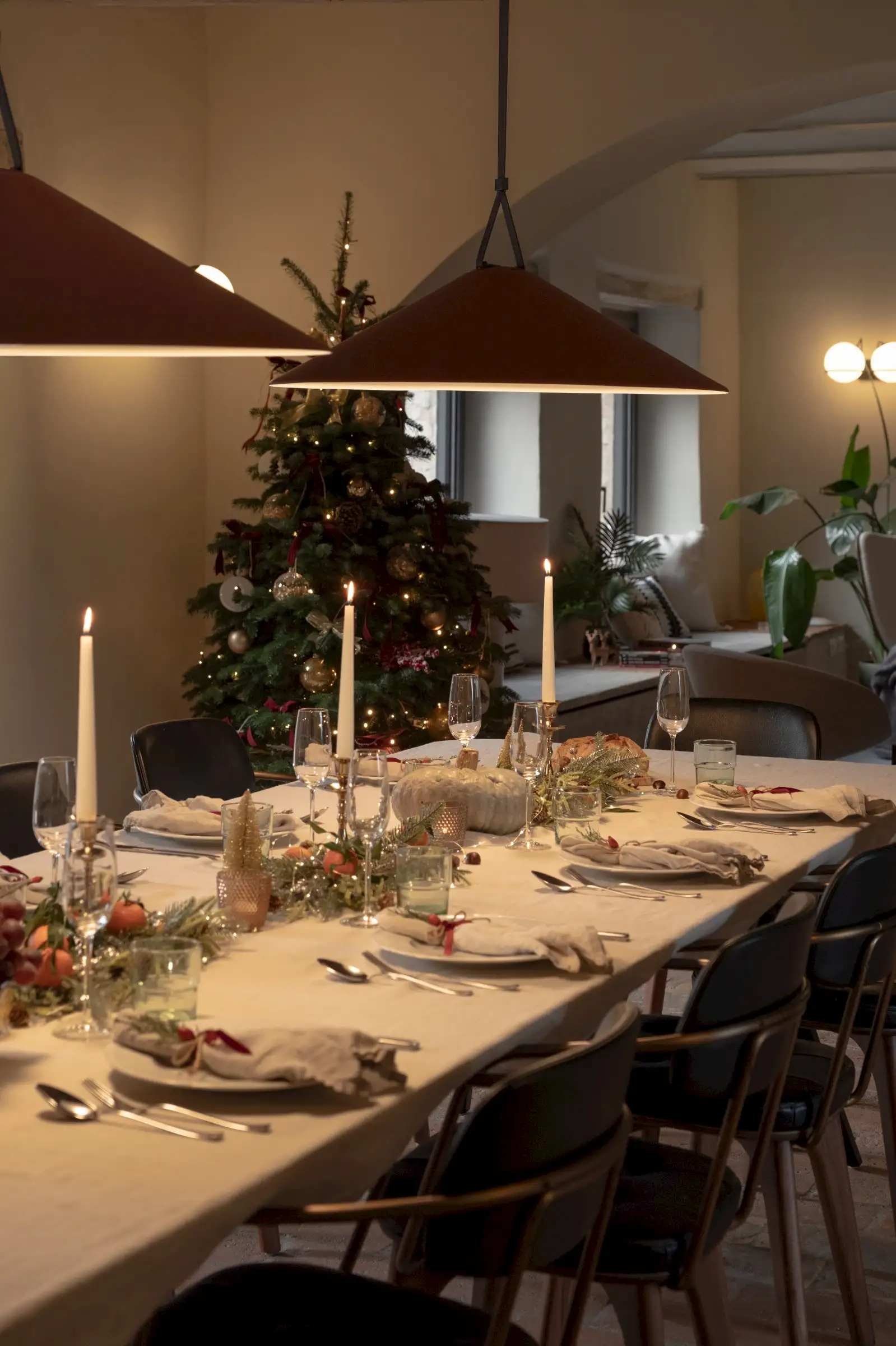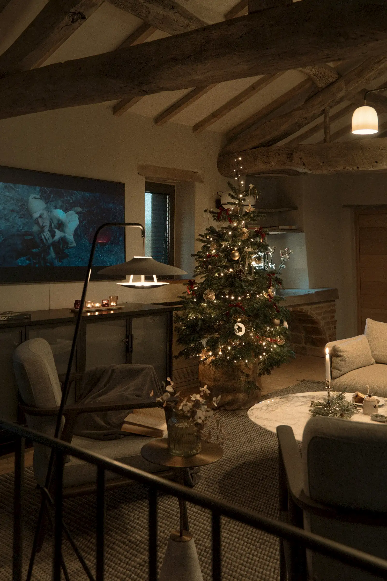 Accommodating ten in five en-suite bedrooms, there is space and comfort in abundance. Here, the property’s original features are the unflashy stars of the show. A soft colour palette reflects the landscape, as does the careful edit of natural materials including different woods, cotto tiles and Carrara marble. You’ll find beds big enough for stocking opening, a dining table that is perfect for a dinner party, fancy or otherwise, and a woodburning stove to snooze in front of. Or head to the upstairs telly room to flop in front of a Christmas film.