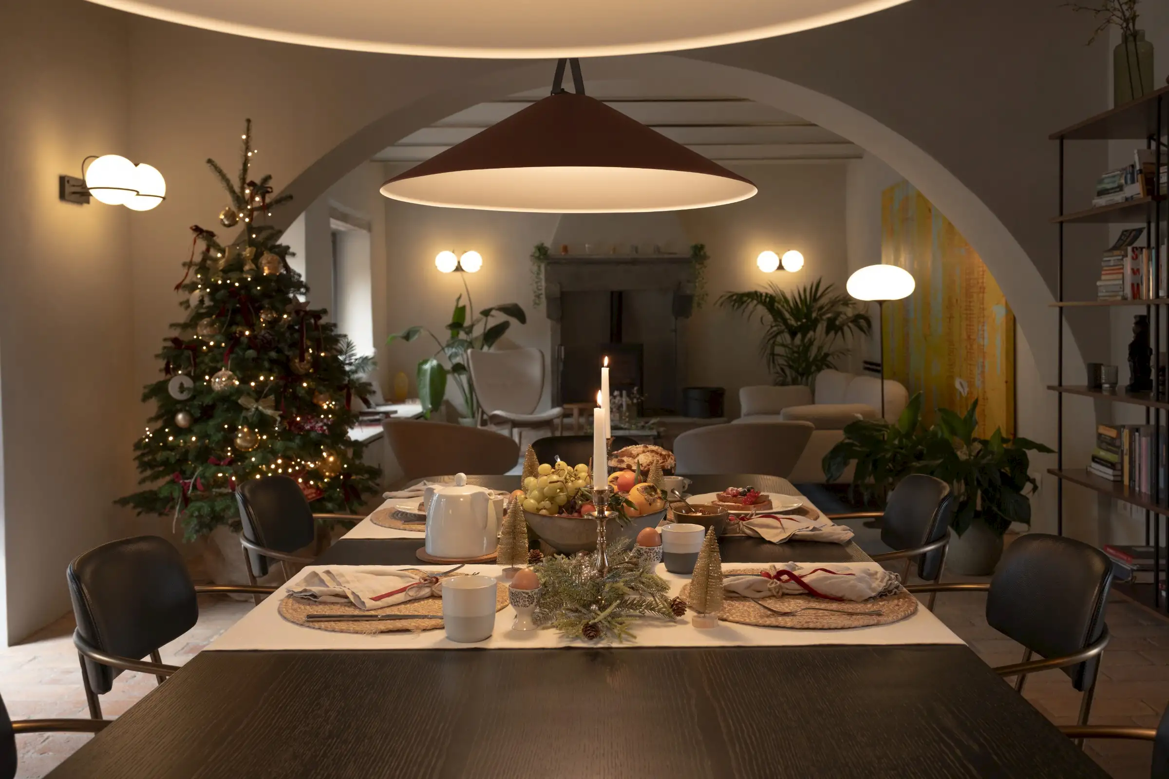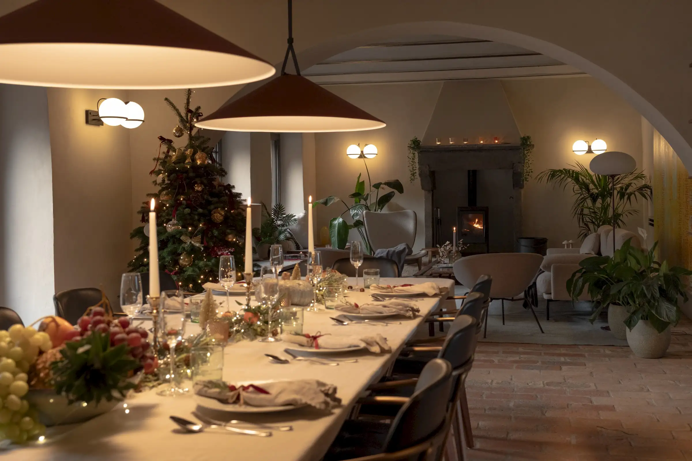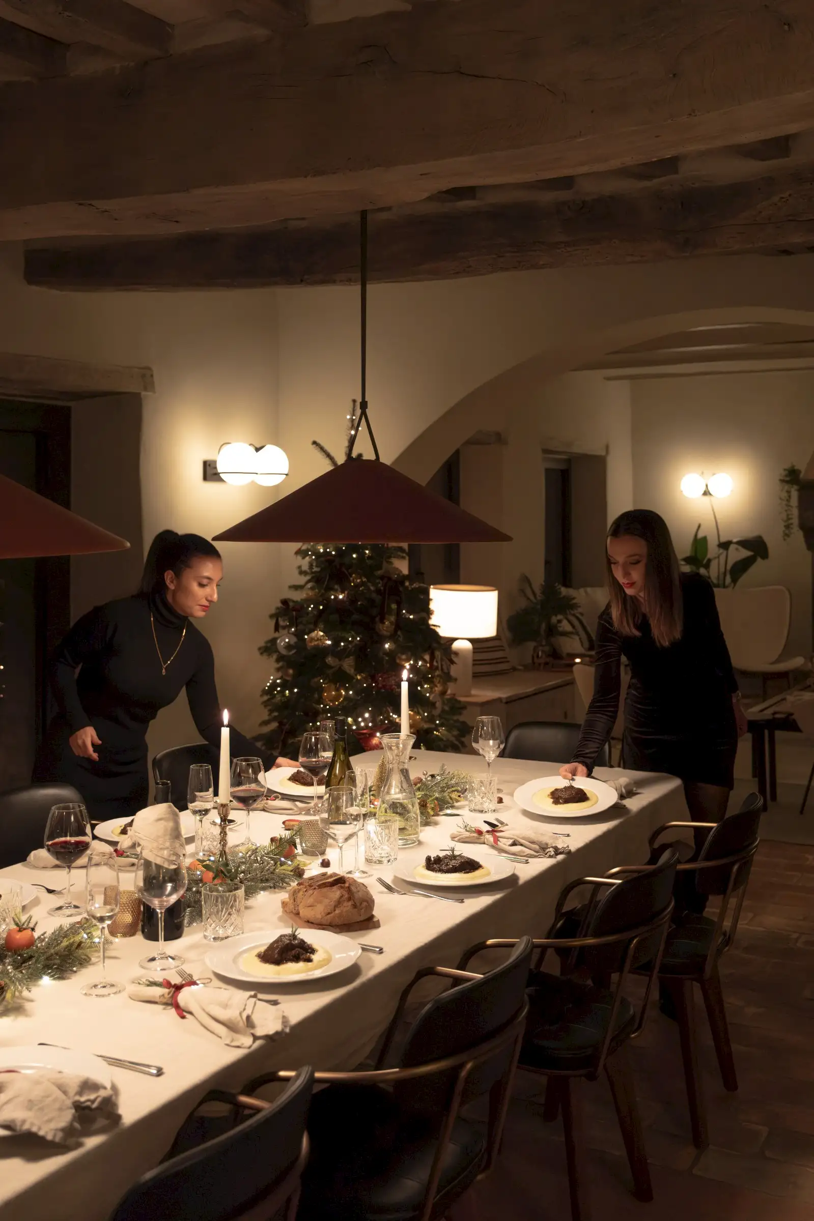Casella, a farmhouse that dates back over 400 years, has Christmas written all over it. Exquisitely renovated, it is perfectly in step with its beautiful setting, where vine-covered hills, meadows and woodland ripple out from the river valley. As if this wasn’t romantic enough, the approach to Casella is along an avenue of Cypress trees that hugs the upwards curve of a hill, shouting ‘Italia’ to approaching guests.