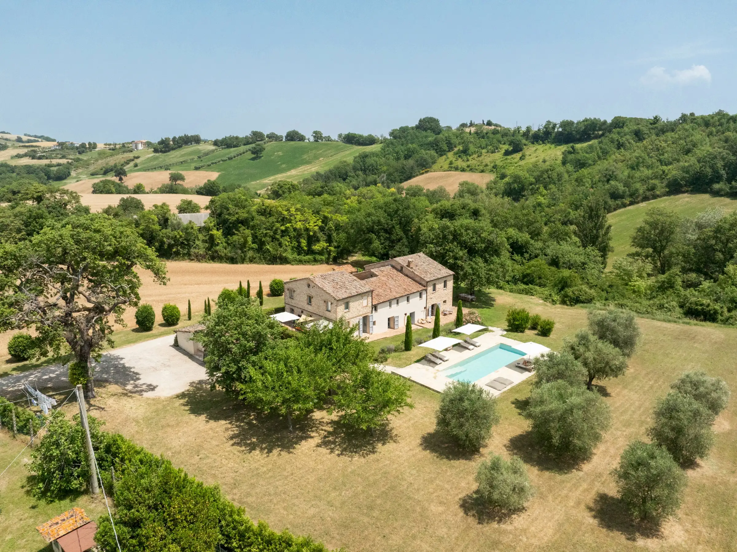 Casa Connelle is a delightful country house that exudes an easy charm. The central part of the building is painted a creamy white and sits between two taller ends of local stone. Approached by an avenue of trees, the house offers peaceful views in every direction over the olive groves and wooded hills of the Marche countryside.