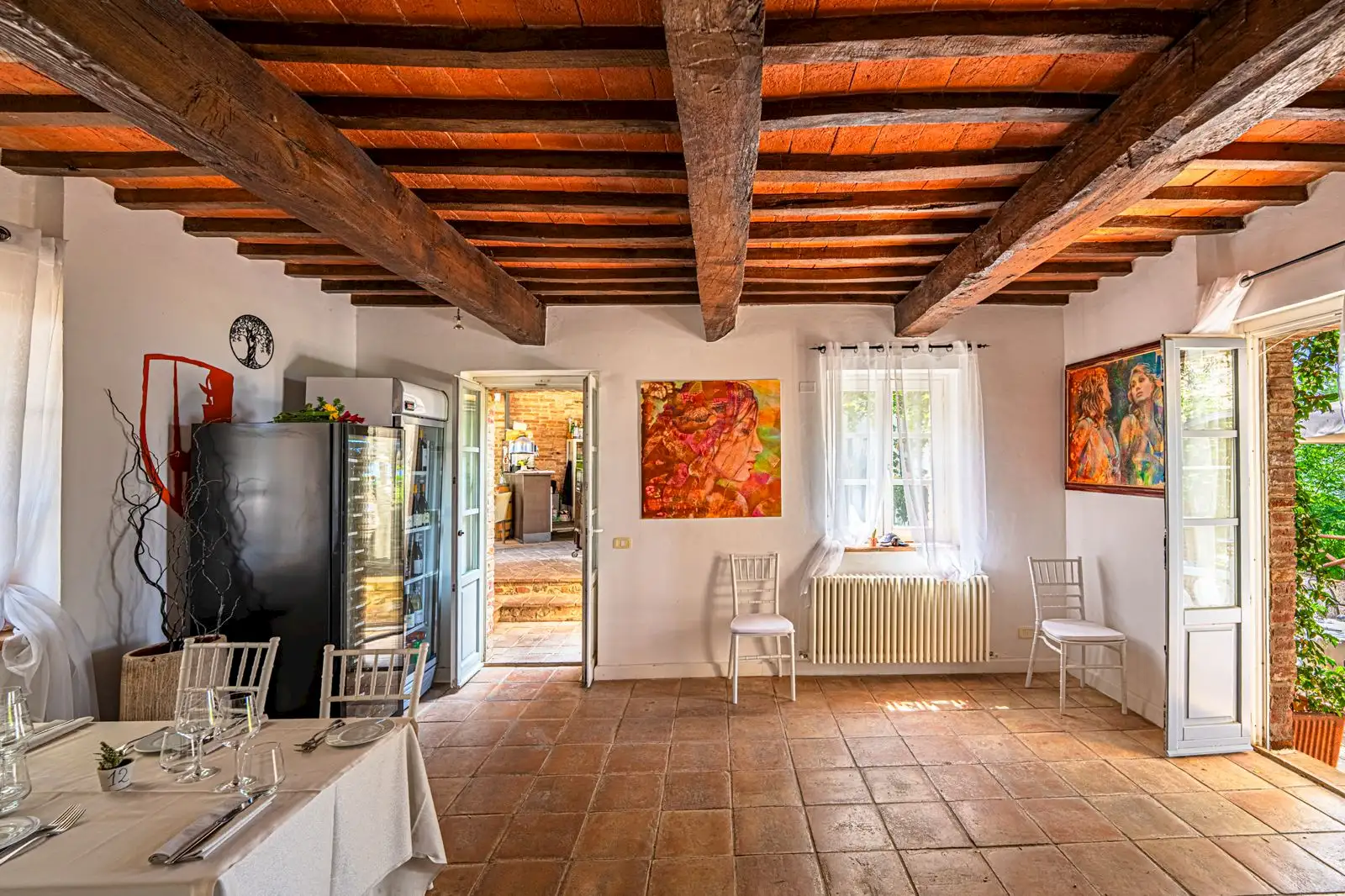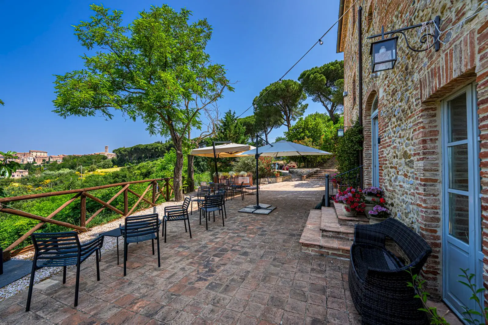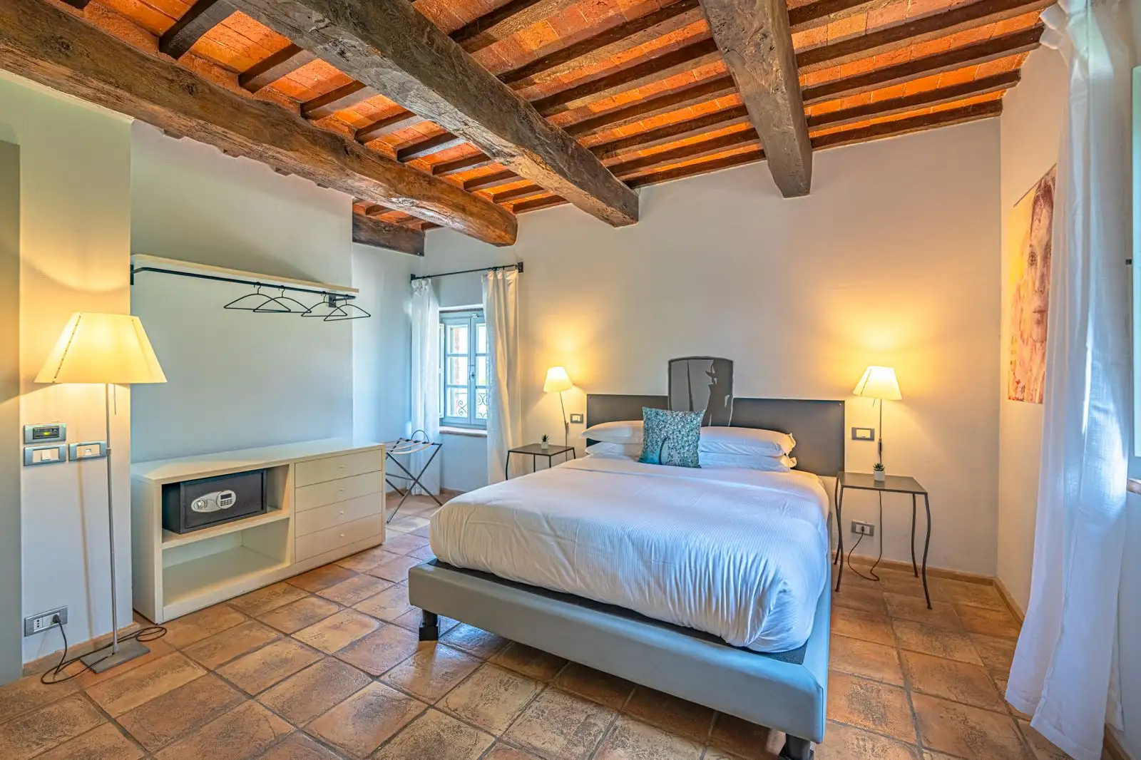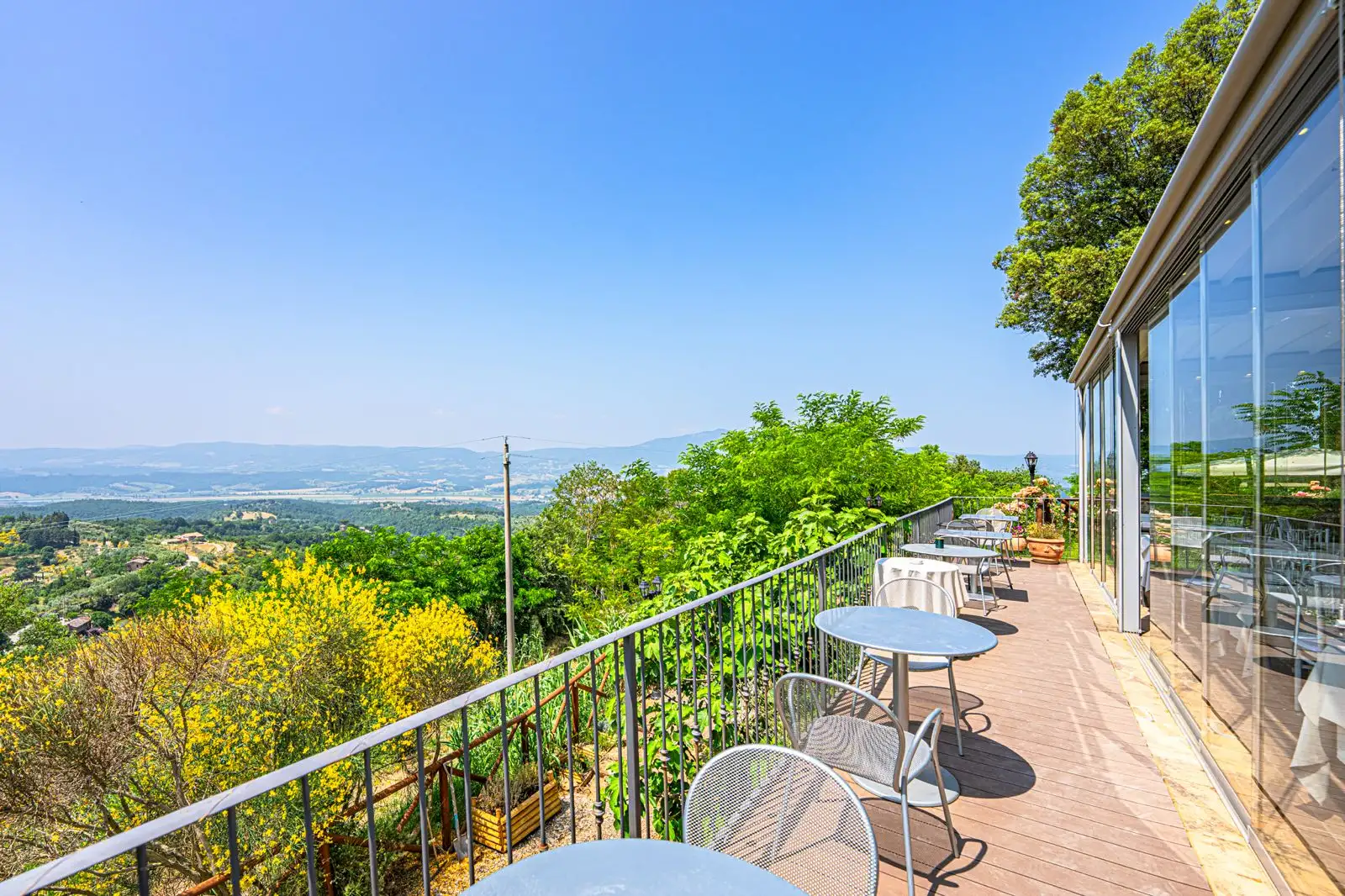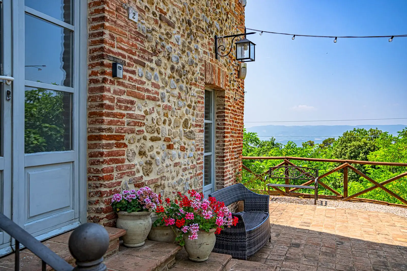 The refined use of terracotta as a prized material for all indoor and outdoor flooring, modern bathrooms, spacious rooms, simple yet elegant furnishings, and the breathtaking views of the Val di Chiana — enjoyable not only from the terrace but also from the splendid swimming pool—make this property truly unique, located only 700 meters from the historic center.