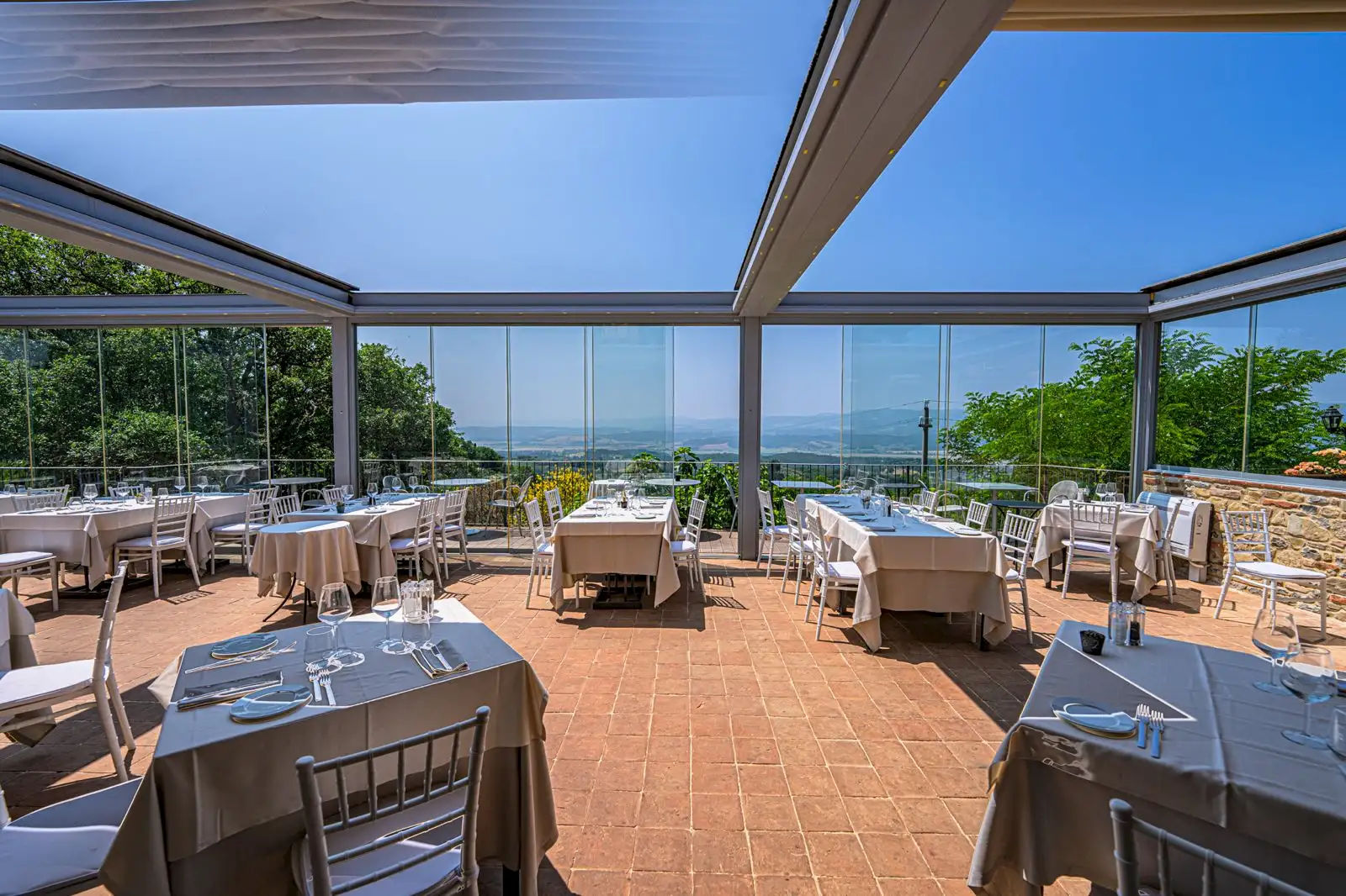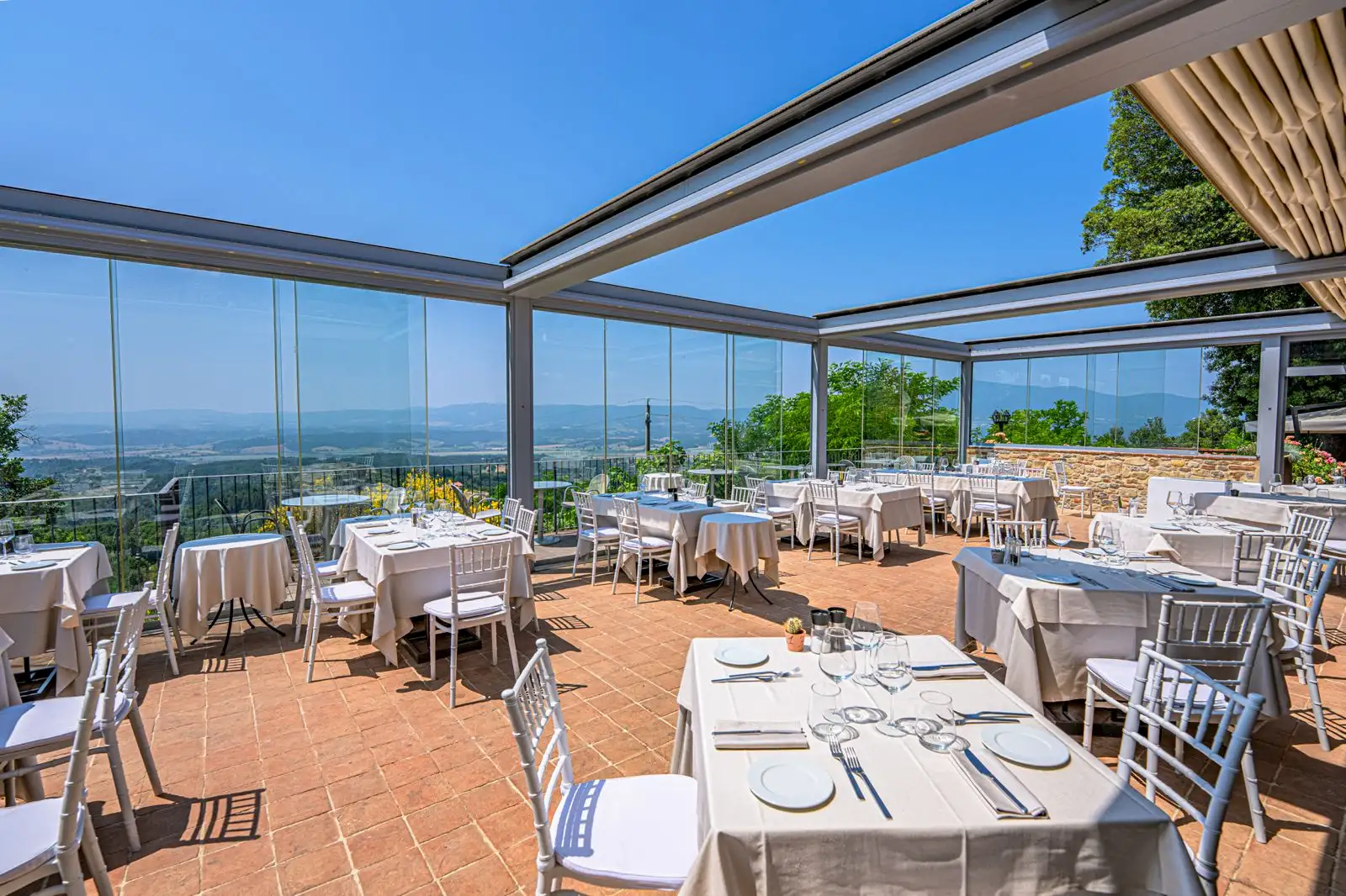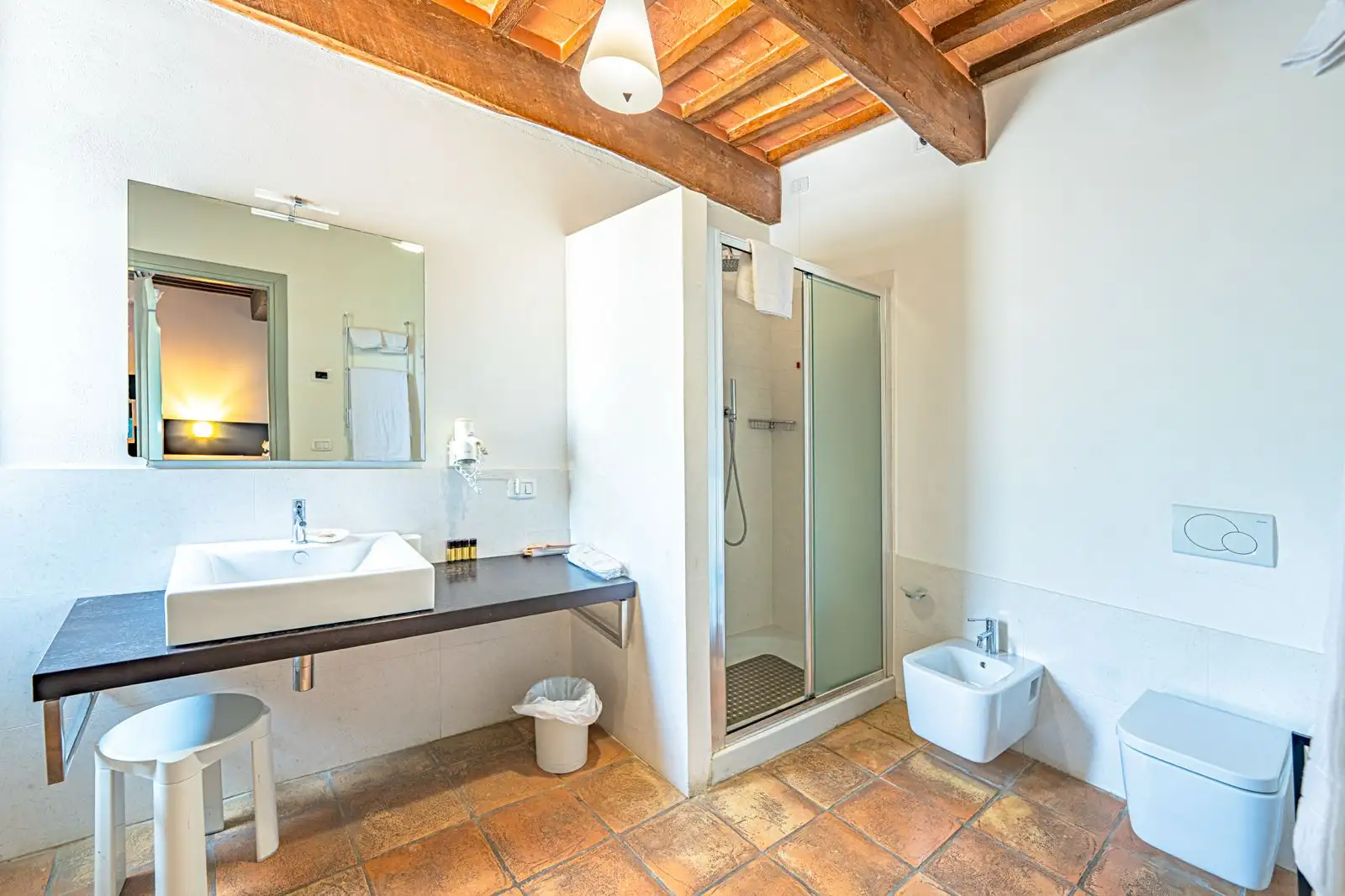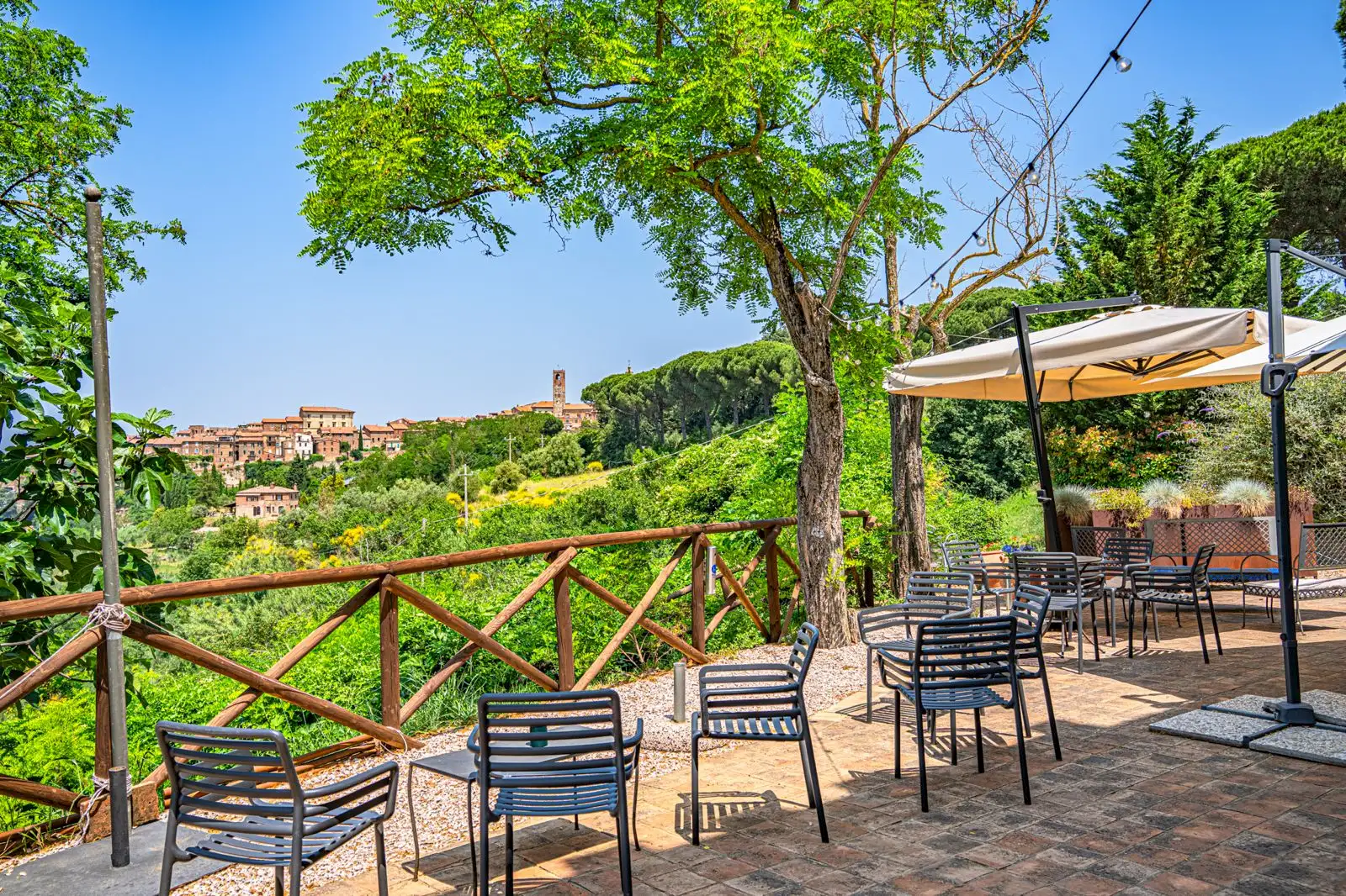 The refined use of terracotta as a prized material for all indoor and outdoor flooring, modern bathrooms, spacious rooms, simple yet elegant furnishings, and the breathtaking views of the Val di Chiana — enjoyable not only from the terrace but also from the splendid swimming pool—make this property truly unique, located only 700 meters from the historic center.