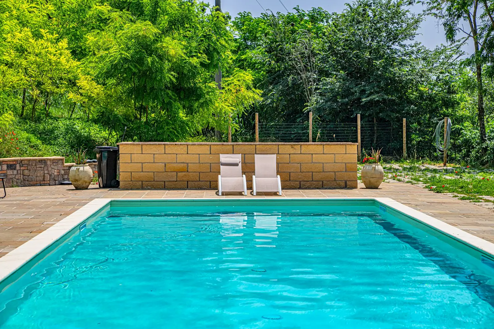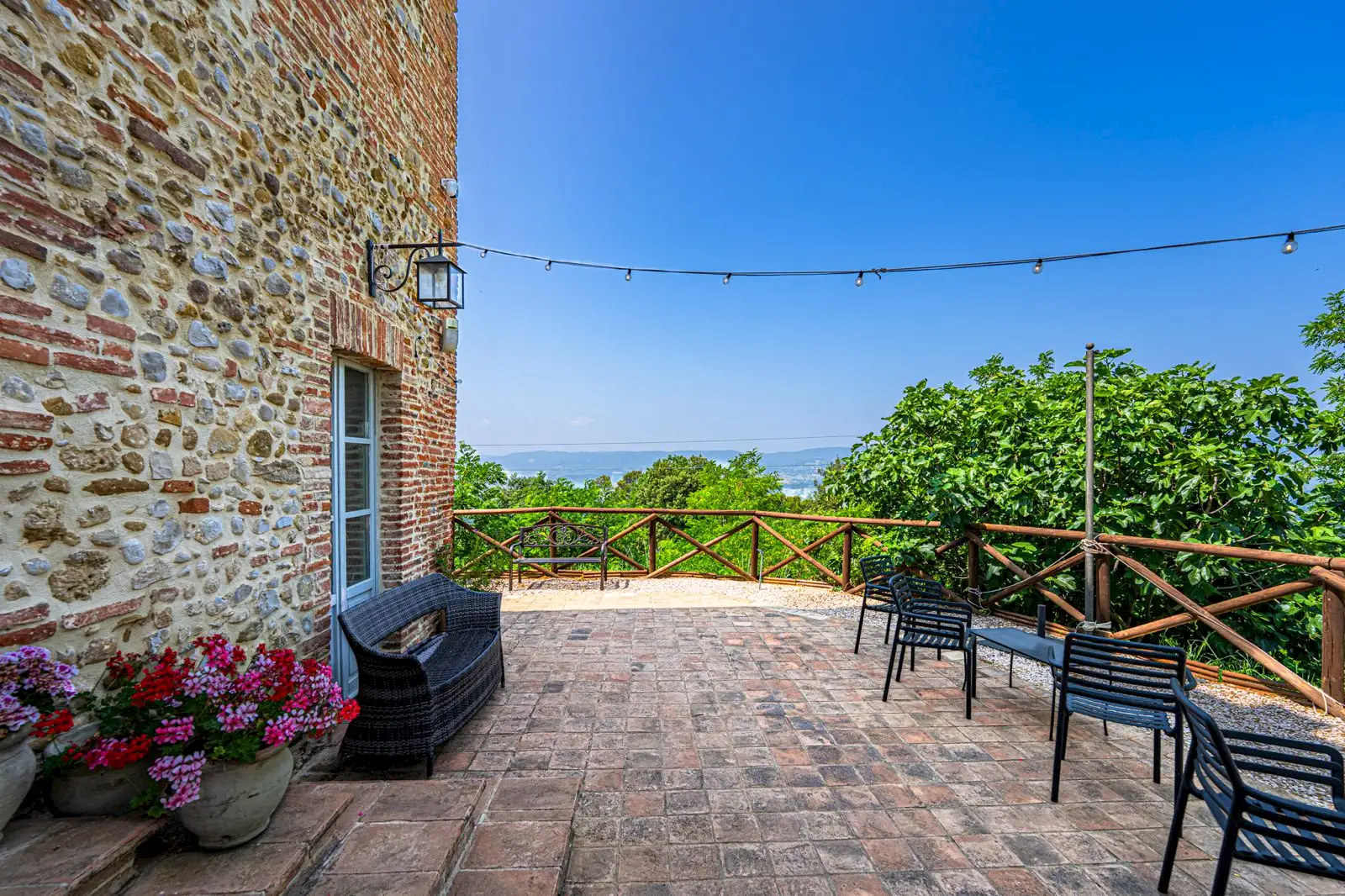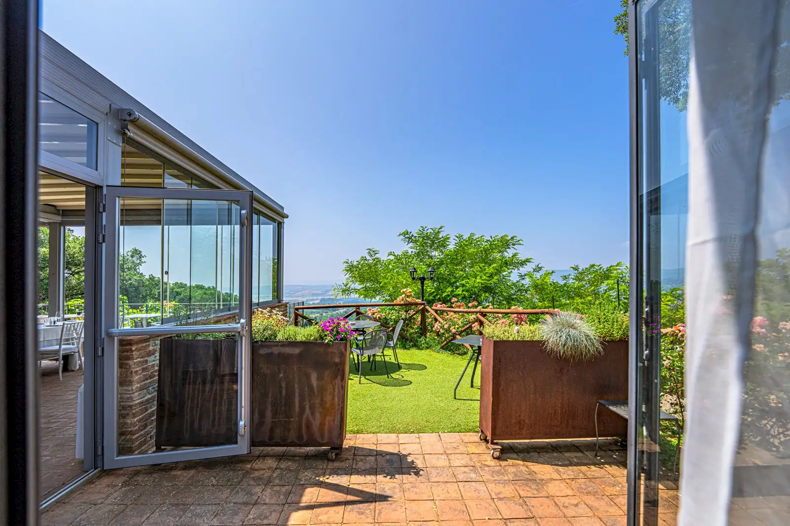 The exterior features a spacious terrace with a breathtaking view of the entire valley, as well as a swimming pool (15x5 mt) equipped with hydromassage and a beautiful garden. Large private parking area is also included in the property.