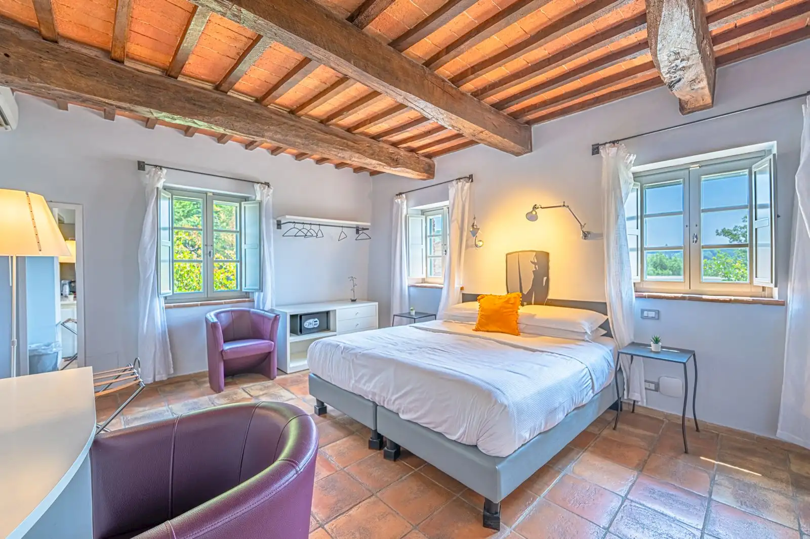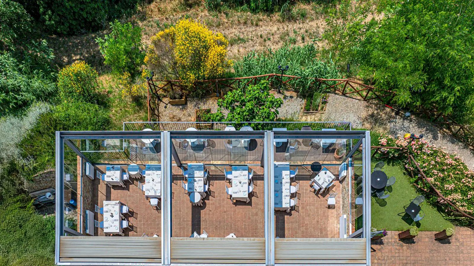 The internal common areas are spacious and bright, characterised by exposed wooden beams and splendid terracotta floors.